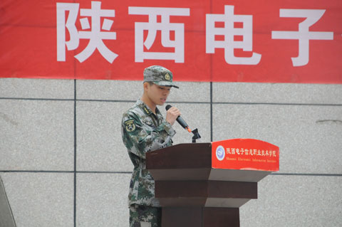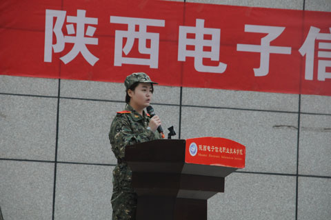 军训团副参谋长贾永强宣读了本次军训 “优秀连队、优秀教官、先进个人和文明宿舍”评选办法。教官代表杨再春和新生代表梅媛在大会上作了发言。