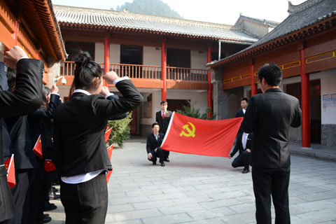 ----12月9日,学生党总支组织40名党员和入党积极分子赴蓝田县葛牌镇鄂豫陕苏维埃政府纪念馆进行参观学习。大家面对党旗,重温了入党誓词,表达了对革命先烈的深切缅怀和崇敬之情。