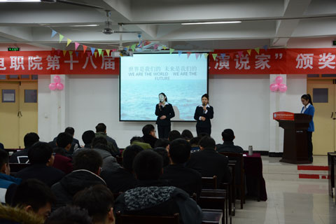 2015年12月16日晚,我院第十八届演讲比赛总决赛和颁奖仪式在1号教学楼多媒体教室举行。副院长张成现、院党政办主任马放奇、学生处处长田志岗、院团委书记李勃及全体辅导员出席了总决赛。