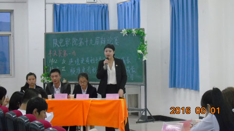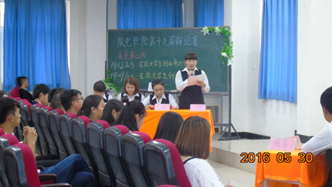 唇枪舌剑,激发求异思维;你来我往,展示雄辩风采。2016年6月2日晚19:00,我院第十九届校园辩论赛总决赛在我院1号教学楼1121多媒体教室举行。