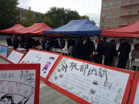 金秋十月,丹桂飘香。10月13日下午,我院在一号教学楼广场举办了一年一度的院团委、学生会纳新宣传工作。纳新活动现场鲜红的横幅,精美的海报,精心的展板,一个个严谨、干练而又充满活力的精英团队形象呈现在大家面前。院学生处处长田志岗老师在团委老师的陪同下莅临指导纳新工作。看到同学们的热情和激情,院领导们都感到很高兴,希望团委、学生会各个部门、社团的同学一定要组织好此次活动,让大一新生能更好的融入到我院团学组织中来,继承和发扬我院团学组织优良传统,把团委、学生会的工作做的更好,再上一个新台阶。