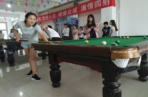 2017年6月12日下午,我院文管部在图书馆二楼学生活动中心举办了“心随球转,快意人生,碰撞台球,激情四射”桌球大赛。