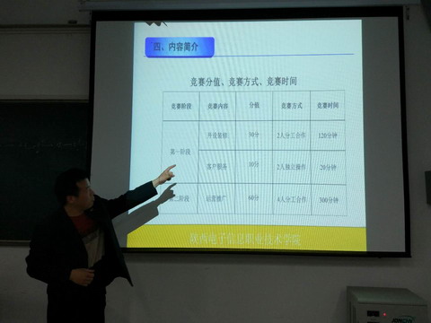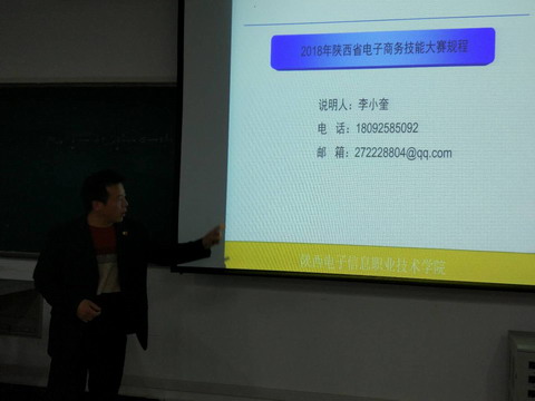 3月14日邀请李小奎老师在1229实训室召开2018年全省高职院校电子商务技能大赛说明会暨参赛动员会,共有54名学生参加。会上,李小奎老师从参加大赛的意义、院校参赛资格、奖项设置、参赛队员报名条件及学生需要准备的材料进行了说明;其次从电子商务技能大赛基本情况、组队报名、竞赛场所、比赛内容简介、评分方法五个方面进行了说明。会后,学院将根据学生参赛报名情况进行筛选、组队、专项辅导,代表我院参加2018年全省电子商务技能大赛。