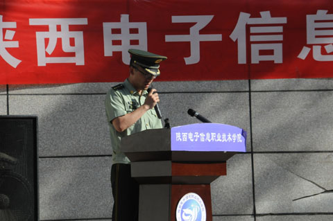 武警西安支队副参谋长李波中校作了讲话,他指出,大学生参加军训是落实国防法的必然要求,是建设强大国防的客观需要,是锤炼体魄、磨练意志的有效途径,他希望参训的同学克服天气的炎热,战胜身体的疲劳,全身心地投入进去,用心体验、刻苦训练,不断增强国防意识和纪律观念,磨炼不屈不挠、迎难而上的坚强意志,培养积极进取、奋发向上的可贵品质,早日成为国家的栋梁,为祖国为人民、为社会贡献智慧和力量。希望参训的每位教官,要坚决服从学校的统一领导、统一指挥,严守纪律、树好形象;要坚持严格组训、按纲施训,讲求科学、确保安全,高质量完成此次军训任务。