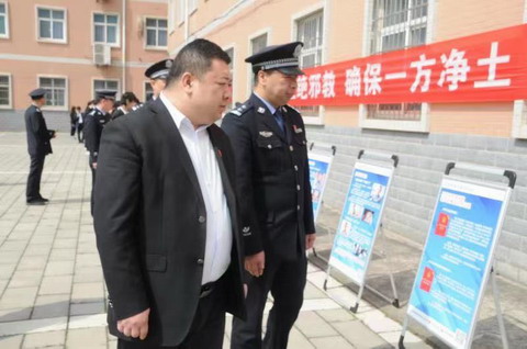 随后,蓝田县公安局副局长张津宣布“反邪教宣传教育进校园”活动启动。启动仪式结束后,参会人员参观了反邪教宣传展板,并发放了反邪教宣传资料。