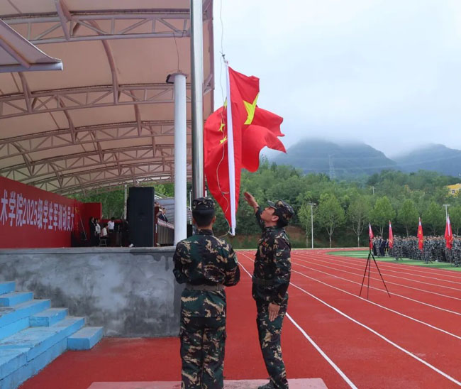 大会伊始,全体参会人员起立,高唱《中华人民共和国国歌》。激昂的旋律回荡在校园上空,新生们身着整齐的迷彩服,眼神坚定、身姿挺拔,在庄严的国歌中深切感受家国情怀,也为即将开启的军训之旅凝聚起蓬勃的青春力量。