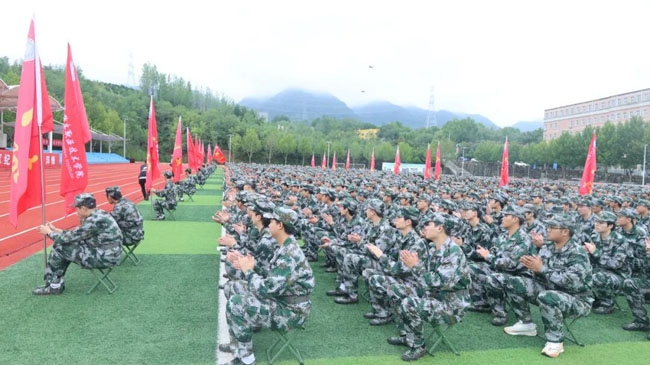 随后,教官代表与新生代表先后上台发言。来自信息工程学院的新生代表胡清亮语气坚定地许下承诺:“第一,严守纪律、一切行动听指挥,以军人的严谨作风规范自身言行;第二,刻苦训练、不畏艰难险阻,发扬‘不放弃、不抱怨’的拼搏精神,认真完成每一项训练任务;第三,团结友爱、互助共进,在集体生活中互帮互助、共同进步,充分展现陕电职院学子的昂扬风貌。” 真挚有力的表态不仅道出全体新生的决心,更赢得了现场阵阵热烈掌声。