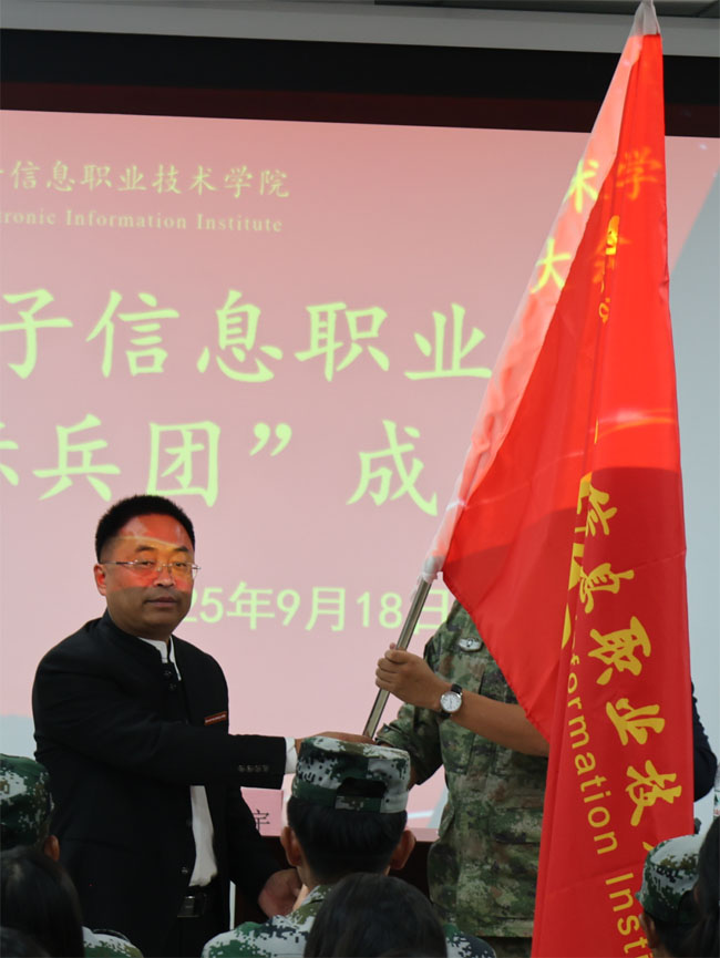 9月18日下午,陕西电子信息职业技术学院标兵团成立大会在报告厅举行。党委委员、副院长李泽宇出席会议并讲话,学生处副处长赵飞主持会议,各二级学院院长、全体辅导员及300名标兵团成员齐聚现场,共同见证这一承载着责任与荣光的时刻。