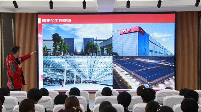 宣讲环节中,各企业代表依次登台,通过详实的企业介绍,帮助同学们全面了解企业发展概况、岗位工作内容、核心业务领域、人才培养体系、招聘岗位要求及薪资福利等信息。企业代表还结合真实案例展开分析,以深入浅出的讲解让同学们对企业及岗位形成直观认知,进一步激发了大家对未来职业生涯的规划意识与憧憬之情。