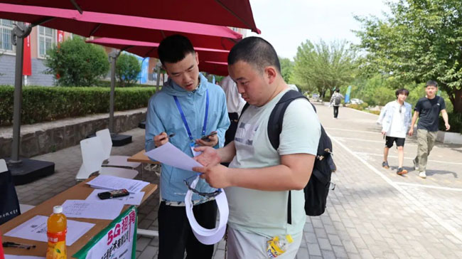 招聘会现场,各个企业展位前人头攒动,毕业生们手持精心准备的简历,穿梭于各个展位之间,认真了解企业的招聘需求和岗位信息。他们积极与招聘人员交流沟通,详细询问工作内容、薪资待遇、职业发展等问题,不少毕业生当场填写简历,表达了强烈的求职意愿。