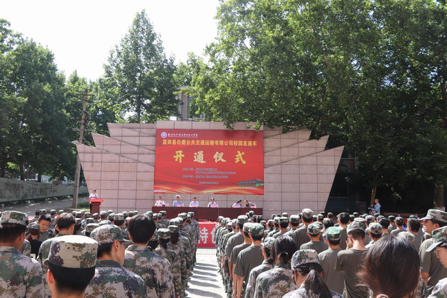 8月22日上午,我院在一号教学楼广场举行校园直通车开通仪式,院党委书记石光华,理事长、院长王明星,蓝田县白鹿公共交通运输有限公司董事长、总经理黄亚玲,蓝田县公安局交警大队副大队长赵欢锋,蓝田县交通执法大队副书记胡伟出席活动并剪彩,全院教职工及学生代表参加开通仪式。活动仪式由党委委员、副院长李泽宇主持。