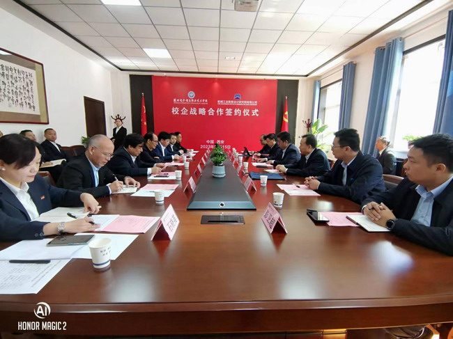 签约仪式上,王明星代表学院对机勘院杨永林一行表示热烈欢迎,他指出,同机勘院签署战略合作协议,是我院发展历程上的一件大事、喜事、好事,对学院的专业建设、教学科研、学生实习就业等工作具有十分重要的意义。杨永林代表机勘院致辞。他指出,产教融合、校企合作,是新时代企业发展及教育进步的必然要求。他强调,陕电院是应用型人才培养的基地,办学理念先进,办学条件好,多年来为社会培养和输送了大批有用人才,他希望校企双方能以此次合作为契机,充分发挥机勘院在无人机及数字孪生等新技术领域在人才资源、科研能力、成果孵化、创新平台等方面的优势,与学校不断创新合作模式,共商共建,协同发展,开展全方位、多层次的校企合作,打造校企合作典范。