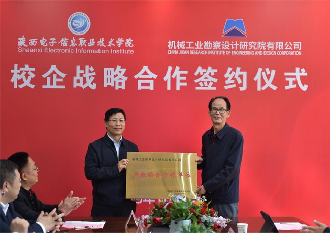 在签约仪式上,机勘院杨永林向我院颁授了“人才培养基地”铜牌,我院石光华向机勘院颁授了“产教融合合作单位”铜牌。