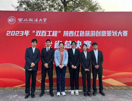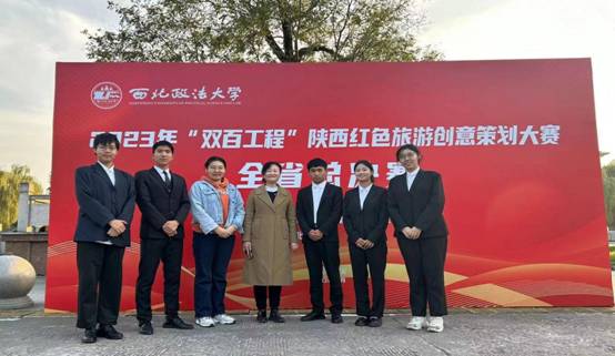 近日,在中共陕西省委教育工作委员会主办,西北政法大学承办的2023年“双百工程”陕西红色旅游创意策划大赛全省高校总决赛中,我院基础部梁飞亚老师指导的五名学生参与的参赛项目“寻觅红迹·相遇周至——基于马召镇百年历程小街创意规划”荣获优秀奖。