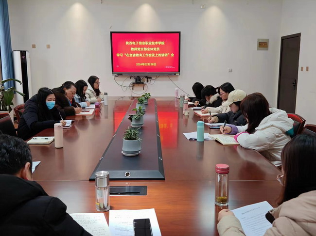 2024年2月28日下午,教师党支部召开党员大会,传达学习全省教育工作会议精神,会议由支部书记杨勇主持,教师党支部全体党员和入党积极分子参加。