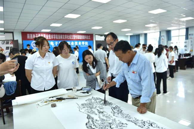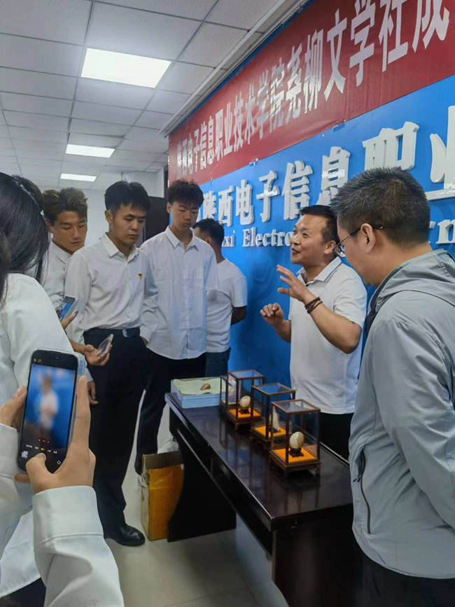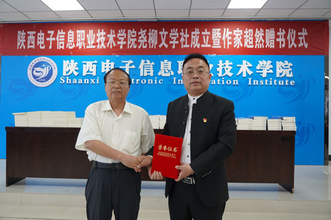 书画创作交流活动前,蓝田县著名作家郝文鹏为我院图书馆、学生社团和部分学生举行了赠书活动。郝文鹏把自己多年来创作的《文苑撷趣》《岁月留痕》《诗风鹏韵》三部文学作品共计500多册无偿捐献给了我院师生。学院为郝文鹏赠送了荣誉证书,对他向学院无偿赠书,支持学院文化艺术教育表示感谢。赠书过程中郝文鹏还向师生分享了自己的创作经验、写作技巧和体会感悟,使师生接受了一次文化教育和熏陶。