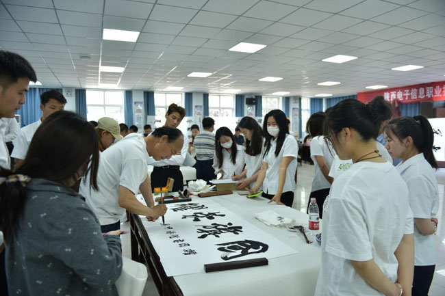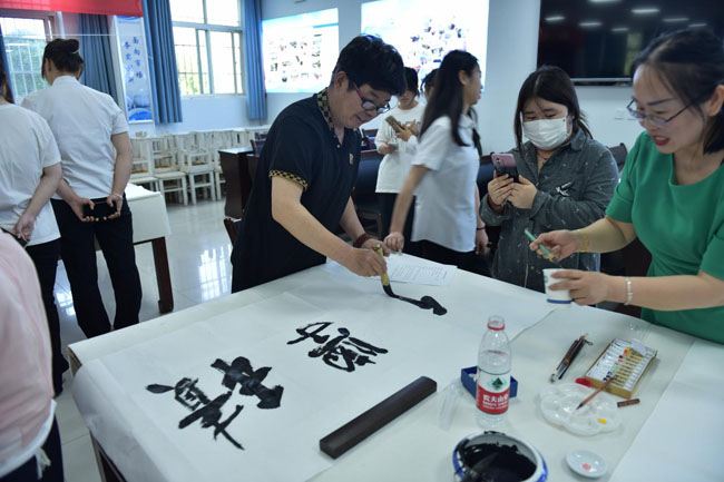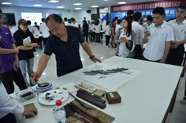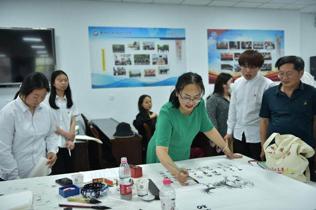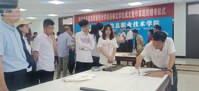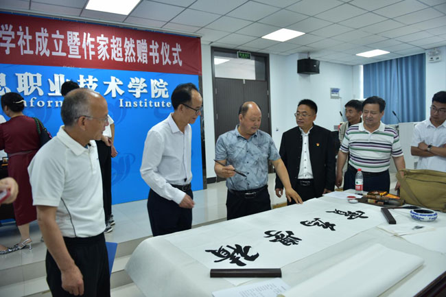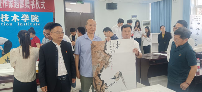院党委书记石光华,院理事长、院长王明星到现场指导。院党委委员、副院长李泽宇向作家超然(郝文鹏)颁发了荣誉证书。100余名师生代表参加观摩了此次书画交流活动。活动由党政办副主任田金峰主持。