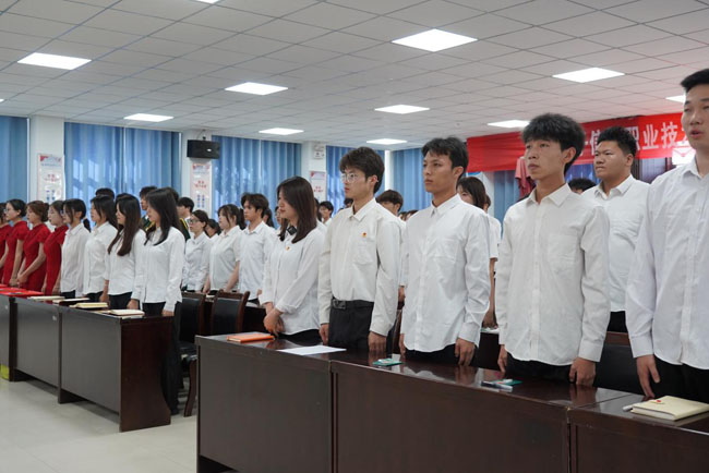 “我志愿加入中国共产主义青年团,坚决拥护中国共产党的领导......”伴随着铿锵有力的誓词,新团员集体面向团旗进行了庄严宣誓。随后,新老团员代表分别作了发言。