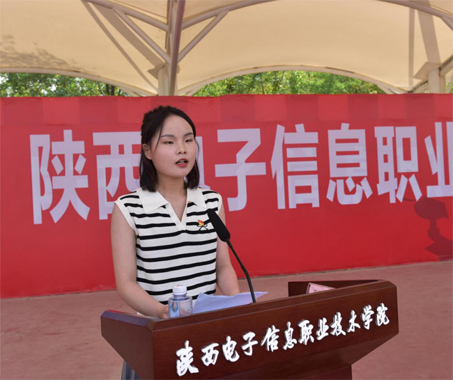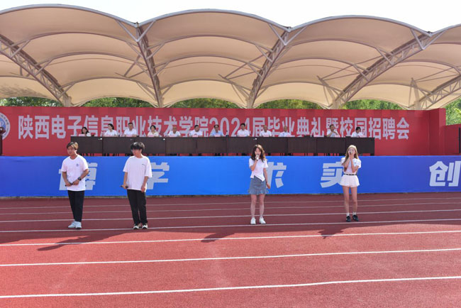 会上院党委委员、副院长年小望宣读了《陕西电子信息职业技术学院2024届优秀毕业生表彰决定》;院领导石光华、王明星、年小望、马放奇、石晓英等为优秀毕业生颁发证书、赠送礼物;教师代表任园园、夏永军、马平婧老师,学生代表淡莎莎,企业家代表江苏无锡健鼎科技有限公司代表王国林等分别发言,欢送2024届学生顺利毕业,并表达了他们对毕业生的美好祝福和对学院未来发展的美好祝愿。在校生代表还献唱了歌曲《飞得更高》,祝愿毕业的学哥学姐飞得更高,飞的更远,鸿图大展,前程似锦。毕业生代表向学院赠送了内容为《桃李芬芳,教泽绵长》的牌匾及锦旗,并向院领导献花,表达了毕业生对辛勤付出的学院各位领导各位老师的感恩和赞颂,对学院的眷恋和惜别之情。