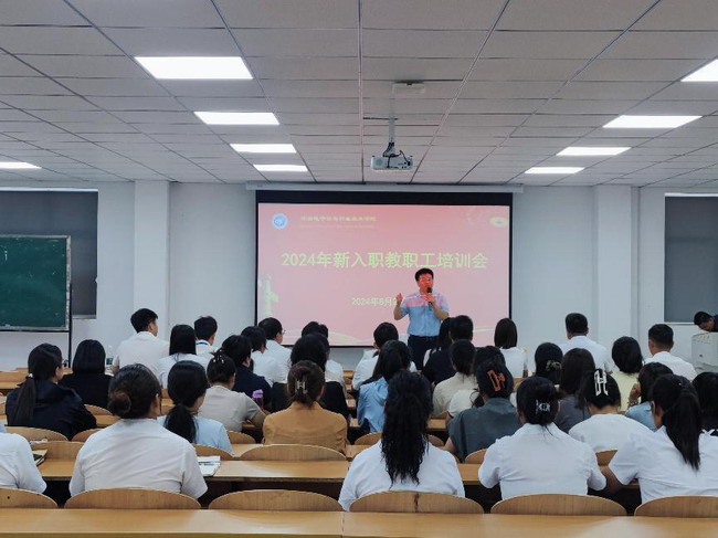 培训会上,院长王明星作了重要讲话。他首先对新教职工加入学院事业发展队伍表示了热烈欢迎。他简要回顾和介绍了学院发展的基本情况以及师资队伍建设、专业建设、产教融合、人才培养等方面取得的成就,展望了学院美好前景。他殷切希望新入职教职工:要加强学习、充实自我;要热爱教育、涵养自我;要融入学校,提高自我。