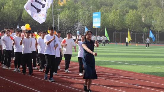 在激昂的《运动员进行曲》中,国旗护卫队迈着铿锵有力的步伐护送国旗入场。他们身姿挺拔、目光坚定,每一步都踏出了蓬勃的朝气与使命感 ,鲜艳的五星红旗在阳光下熠熠生辉。随后,彩旗方队挥舞着五彩斑斓的旗帜紧跟其后,猎猎彩旗如波浪翻涌,彰显着青春的热烈与奔放。志愿者方队、教工裁判队依次走过主席台,他们精神饱满,用灿烂的笑容和整齐的步伐展现着奉献精神与专业态度。