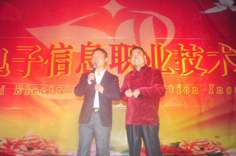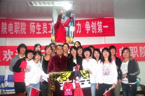 9月28日晚,应我院诚挚邀请,陕西省秦歌协会会长、中国秦歌第一人——十三狼来我院参加了“2010年庆国庆迎新生文艺晚会”,并倾情表演了秦歌曲目,受到广大师生的热烈欢迎。表演完毕,院长邢永华同志上台与十三狼亲切握手、合影,并向十三狼颁发了“聘请十三狼同志为我院客座教授”的聘书。
