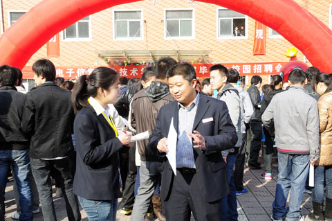 2011年11月23日,我院隆重举办了2012届毕业生校园招聘会。学院领导、学生处、教务处、系、部领导和企业代表及全体毕业生出席了招聘会。招聘会由院理事会理事长兼常务副院长穆耀辉主持,院长党惠清致辞,她对毕业生提出了三点要求:一是要保持平稳心态,准确定位。二是要主动出击,相信自己。三是要放眼未来,着眼长远。并希望在本次招聘会上,用人单位能选拔出合适的人才,毕业生能找到适合自己的岗位。企业代表史扬威和学生代表田帅在大会上进行了发言,院党委书记李云济宣布招聘会开始。
