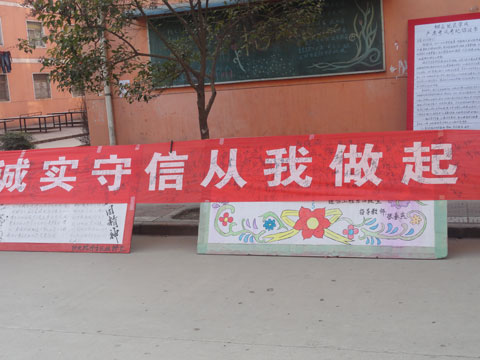 在红色背景的映衬下,“诚实守信从我做起”大字十分醒目,过往的师生纷纷走到横幅边,签上了自己的名字,他们都知道,这不仅仅是一个名字,更是一种责任,因为作为新时代的大学生,应该在期末考试的考卷上写下真实的一笔,或许那一笔并不完美,但代表着一种最高层次的自我实现,条幅上密密麻麻地布满了同学们留下的签名。通过此次活动,反映了同学们高尚的品德修养。昭示了同学们对本次期末考试的诚信度,激发了广大学生杜绝作弊、文明考试的诚信热情。同时,文明考试签名活动,对督促学生努力学习、认真备考起到了良好推动作用。