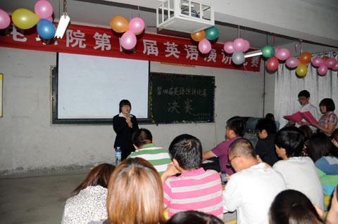 2012年5月28日下午,由院团委主办、团委社团部英语俱乐部承办的第四届英语演讲比赛在305多媒体教室圆满落下了帷幕。本次比赛分为初赛和决赛两个阶段。初赛阶段选出了十名优秀选手进入决赛。经过两小时的激烈角逐,曹娇同学获得一等奖。1104班王太转、1109班原江华获得二等奖,1109班李婉、1104班周毛,1109班马慧分别取得三等奖。1103班李军芳获得了优秀奖,1103班王雅楠获得了最佳人气奖。