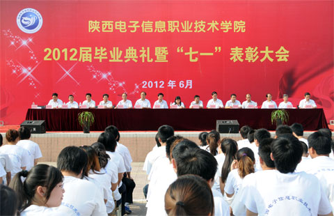 2012年6月21日上午,我院在1号教学楼前广场召开了2012届毕业生毕业典礼,毕业典礼由院理事长兼常务副院长、院党委副书记穆耀辉同志主持。院长党惠清、党委书记史军胜、副院长陈建铎、工会主席杨瑞卿及各处(室)、系(部)领导出席了毕业典礼。
