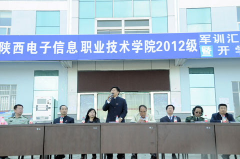 2012年9月15日,我院在院图书馆楼前隆重举行2012年新生开学典礼。董事长王明亮,教育厅维稳联络员史汉普,院长党惠清,院党委书记史军胜,院理事会理事长、常务副院长、党委副书记穆耀辉,副院长陈建铎,院工会主席杨瑞卿及各系、部、处、室负责人和2012级全体新生参加了开学典礼。