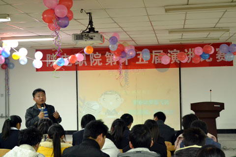 为了激发大学生勤奋学习、积极进取、全面发展、勇攀高峰的热情,进一步提高大家的语言表达能力和演讲能力,2012年11月30日下午16:30分,我院教务处、团委主办,院团委宣传部承办第十五届演讲比赛开幕式仪式在6-301多媒体教室隆重举行。
