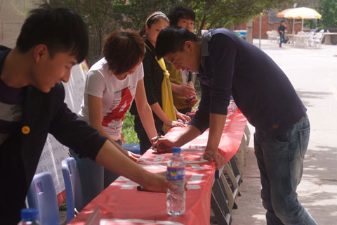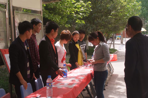 为全面贯彻落实党的十八大精神,厉行勤俭、反对铺张浪费,扎实开展勤俭节约教育,建设节约型校园活动。按照教育部文件要求,结合我院实际,院总务处、院团委于4月15日认真开展了“勤俭节约、从我做起”签名活动——动员大会暨承诺签名仪式。我院学生干部代表曹娇宣读了“光盘行动”倡议书,倡议同学们要从节约粮食开始搞好勤俭节约,反对浪费;树立节约光荣,浪费可耻的思想观念,以“光盘”为荣,“剩宴”可耻,用文明演绎生活,以行动展示形象。