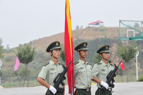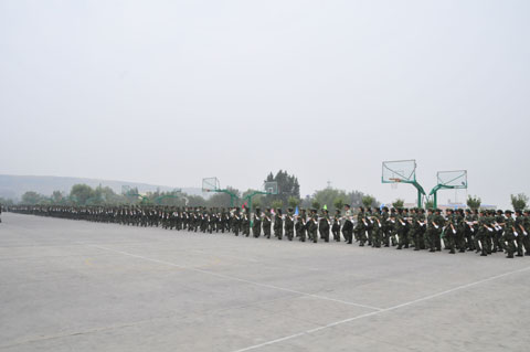 大会在庄严肃穆的国歌声中拉开了帷幕,伴随着嘹亮的解放军进行曲,常务院长穆耀辉在军训指挥长陪同下检阅了军训方队。紧接着,军姿威武的2013级新生,排着整齐的队列,迈着整齐的步伐,喊着响亮的口号,依次通过主席台,展现了他们在10天军训中所取得的可喜成果和当代大学生昂扬激情和青春风采。随后,参训同学进行了男子擒敌拳表演、女子花样队列表演、集体五步拳表演和集体洗衣舞表演,合唱了《士兵的桂冠》。