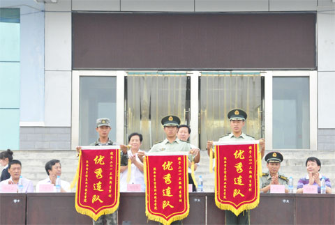 汇报表演结束后,军训团参谋长田志岗宣读了《关于表彰2013级军训优秀连队、文明宿舍、优秀教官和优秀学员的决定》(陕电职院[2013]14号),主席台就坐的领导为获得优秀连队、文明宿舍、优秀教官和优秀学员颁发了荣誉证书。