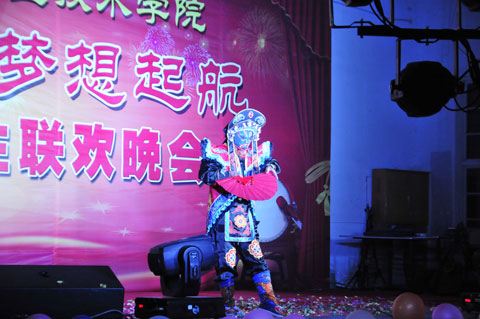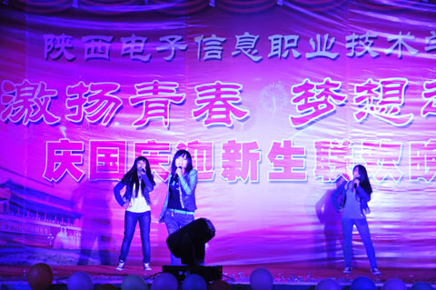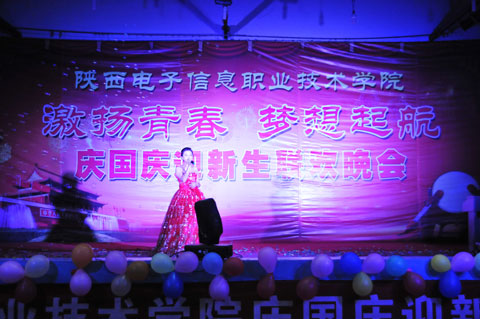 2013年9月27日晚19时,我院2013年庆国庆迎新生联欢晚会在一区大礼堂举行,晚会以“激扬青春 梦想起航”为主题。院党委书记史军胜,院理事会理事长兼常务院长、院党委副书记穆耀辉,副院长夏绘秦,院工会主席杨瑞卿以及各系部处室的领导老师和全院学生共同观看了晚会。