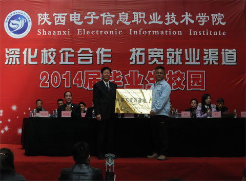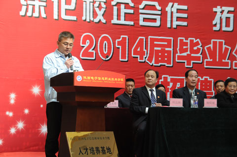 院理事会理事长穆耀辉致欢迎词。他向前来选拔我院2014届毕业生的用人单位表示衷心的感谢和热烈的欢迎,针对目前的就业形势,他希望2014届毕业生积极转变就业观念,确立合理的就业期望值,珍惜每一个就业机会,积极与参会单位、企业应聘签约;希望各用人单位选拔到合适的人才;同时也真诚希望在校学生提前进入角色,把校园招聘会作为锻炼和提高自身就业竞争力的平台,及早谋划个人就业计划,为今后实现顺利就业打下良好的基础。开幕式上,院党委书记史军胜代表学院与巨腾国际控股有限公司进行了学生实习实训基地和人才培养基地相互授牌。并为寒假参加社会实践获得优秀员工的学生颁发了荣誉证书和奖金,毕业生代表王翔在大会上发言。