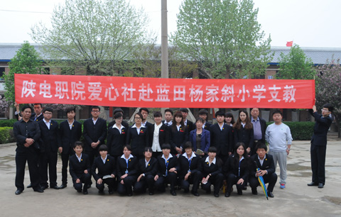 为了增强当代大学生的社会责任心,培养团结合作和乐于助人的优良品质。2014年4月10日下午,我院爱心社团组织24名志愿者,带着文体用品,前往蓝田县杨家斜小学开展支教活动。