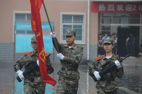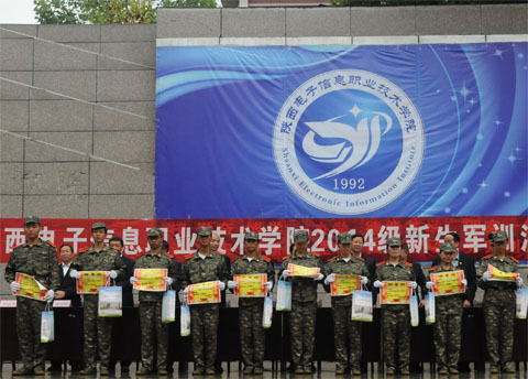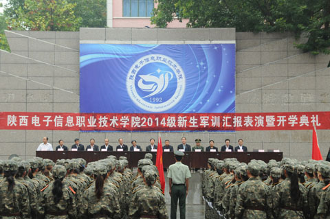 9月9日,我院2014级新生军训汇报表演在1号教学楼前广场举行。院党委书记史军胜,院理事会理事长、常务院长、党委副书记穆耀辉,副院长夏绘秦,院工会主席杨瑞卿及各部门负责人参加了大会。会议由学生处处长田志岗主持。