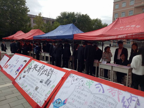 金秋十月,丹桂飘香。10月13日下午,我院在一号教学楼广场举办了一年一度的院团委、学生会纳新宣传工作。纳新活动现场鲜红的横幅,精美的海报,精心的展板,一个个严谨、干练而又充满活力的精英团队形象呈现在大家面前。院学生处处长田志岗老师在团委老师的陪同下莅临指导纳新工作。看到同学们的热情和激情,院领导们都感到很高兴,希望团委、学生会各个部门、社团的同学一定要组织好此次活动,让大一新生能更好的融入到我院团学组织中来,继承和发扬我院团学组织优良传统,把团委、学生会的工作做的更好,再上一个新台阶。
