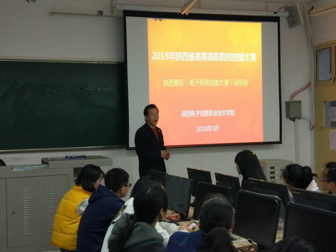 3月14日邀请李小奎老师在1229实训室召开2018年全省高职院校电子商务技能大赛说明会暨参赛动员会,共有54名学生参加。会上,李小奎老师从参加大赛的意义、院校参赛资格、奖项设置、参赛队员报名条件及学生需要准备的材料进行了说明;其次从电子商务技能大赛基本情况、组队报名、竞赛场所、比赛内容简介、评分方法五个方面进行了说明。会后,学院将根据学生参赛报名情况进行筛选、组队、专项辅导,代表我院参加2018年全省电子商务技能大赛。