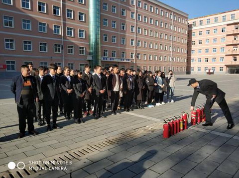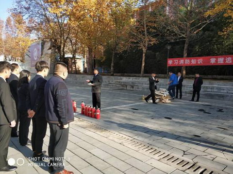 保卫处处长田志岗、消防干事王伟分别向现场人员介绍了消防安全知识及火灾的危害,示范了如何正确使用灭火器。讲解后,进行了灭火实操演练。