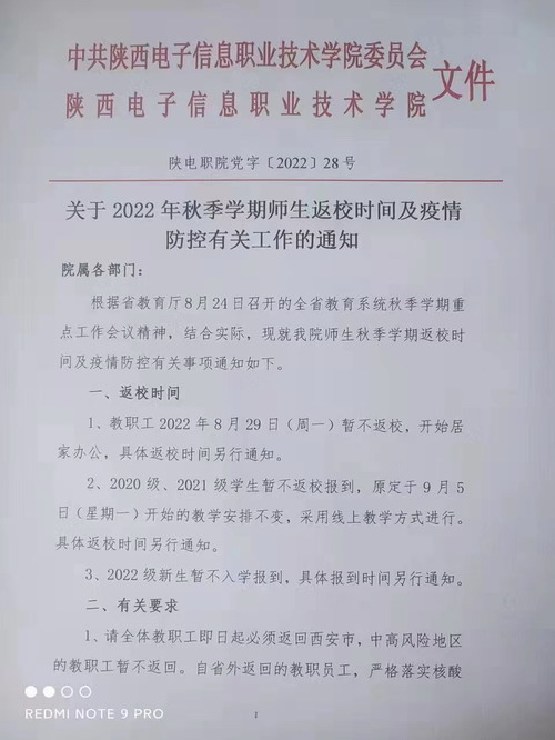 关于2022年秋季学期师生返校时间及疫情防控有关工作的通知