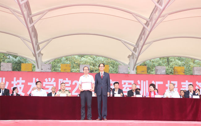 他指出,经过两周时间的军训,我校2000余名学生顺利完成了军训任务,达到了预期效果。军训期间,各位教官不辞辛苦,严格要求,严谨执教,严格训练,循循善诱,认真示范,耐心指导,他们认真负责,一丝不苟的严谨作风深深教育和影响了广大参训学生。参训学生严格要求,严格训练,听从指挥,继承我军光荣传统,发扬不怕苦不怕累的拼搏精神,流血流汗不流泪,掉皮掉肉不掉队,全身心投入训练,圆满完成了各项军训任务。