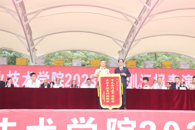 9月18日上午,我院在田径运动场隆重举行2023年学生军训汇报表演暨总结表彰大会。院党委书记、军训团政委石光华出席并作总结讲话,院理事长、院长、军训团团长王明星、承训部队参谋长张帆出席大会,院各领导、各职能部门负责人及全体师生参加大会,国机集团机勘院测绘工程院副院长王双雨,陕西广播电视台《丝路博览》栏目主任孙韩玲,陕西省社科联常委、陕西省心理健康教育研究会会长宋馨等领导嘉宾及10家校外教育实践基地负责人应邀参会。党委委员、副院长李泽宇主持大会。