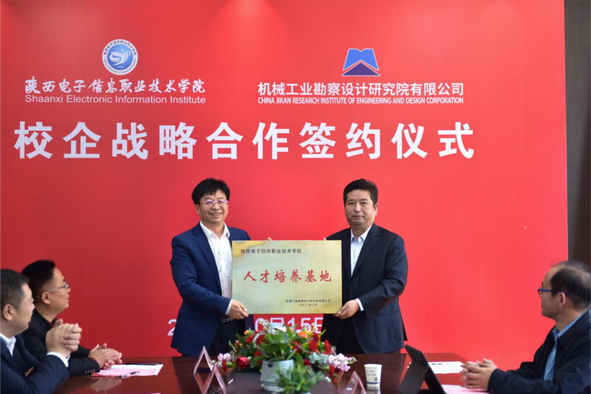 在签约仪式上,机勘院杨永林向我院颁授了“人才培养基地”铜牌,我院石光华向机勘院颁授了“产教融合合作单位”铜牌。