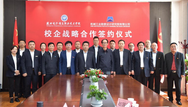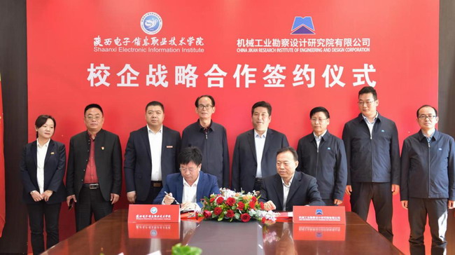 签约仪式上,王明星代表学院对机勘院杨永林一行表示热烈欢迎,他指出,同机勘院签署战略合作协议,是我院发展历程上的一件大事、喜事、好事,对学院的专业建设、教学科研、学生实习就业等工作具有十分重要的意义。杨永林代表机勘院致辞。他指出,产教融合、校企合作,是新时代企业发展及教育进步的必然要求。他强调,陕电院是应用型人才培养的基地,办学理念先进,办学条件好,多年来为社会培养和输送了大批有用人才,他希望校企双方能以此次合作为契机,充分发挥机勘院在无人机及数字孪生等新技术领域在人才资源、科研能力、成果孵化、创新平台等方面的优势,与学校不断创新合作模式,共商共建,协同发展,开展全方位、多层次的校企合作,打造校企合作典范。