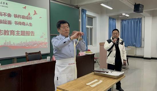 为了弘扬中华民族的传统美德,激发学生的学习原动力,把建成人人拼搏、人人感恩、人人绽放的能量场,引导学生做励勤奋之志、怀感恩之心的新时代青年。12月18日,我院开展了一场“锲而不舍、铁杵磨成针,一根扯面、书传奇人生”为主题的感恩励志报告会。