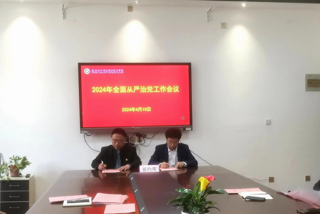 2024年4月10日,我院召开全面从严治党工作会议,传达学习二十届中央纪委三次全会精神和全省教育系统全面从严治党工作会议精神,总结学院2023年全面从严治党工作,安排部署2024年重点任务。院党委书记石光华出席并讲话,院党委副书记、纪委书记马放奇主持会议,院各领导、党委委员、纪委委员,副处级以上干部、各党支部书记参加会议。