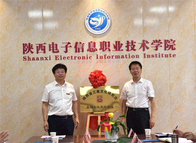 省政协原副主席、陕西省三秦文化研究会会长张社年和陕西电子信息职业技术学院院长、尧柳文化交流协会主席王明星共同为陕西三秦文化研究会尧柳文化交流中心揭牌。